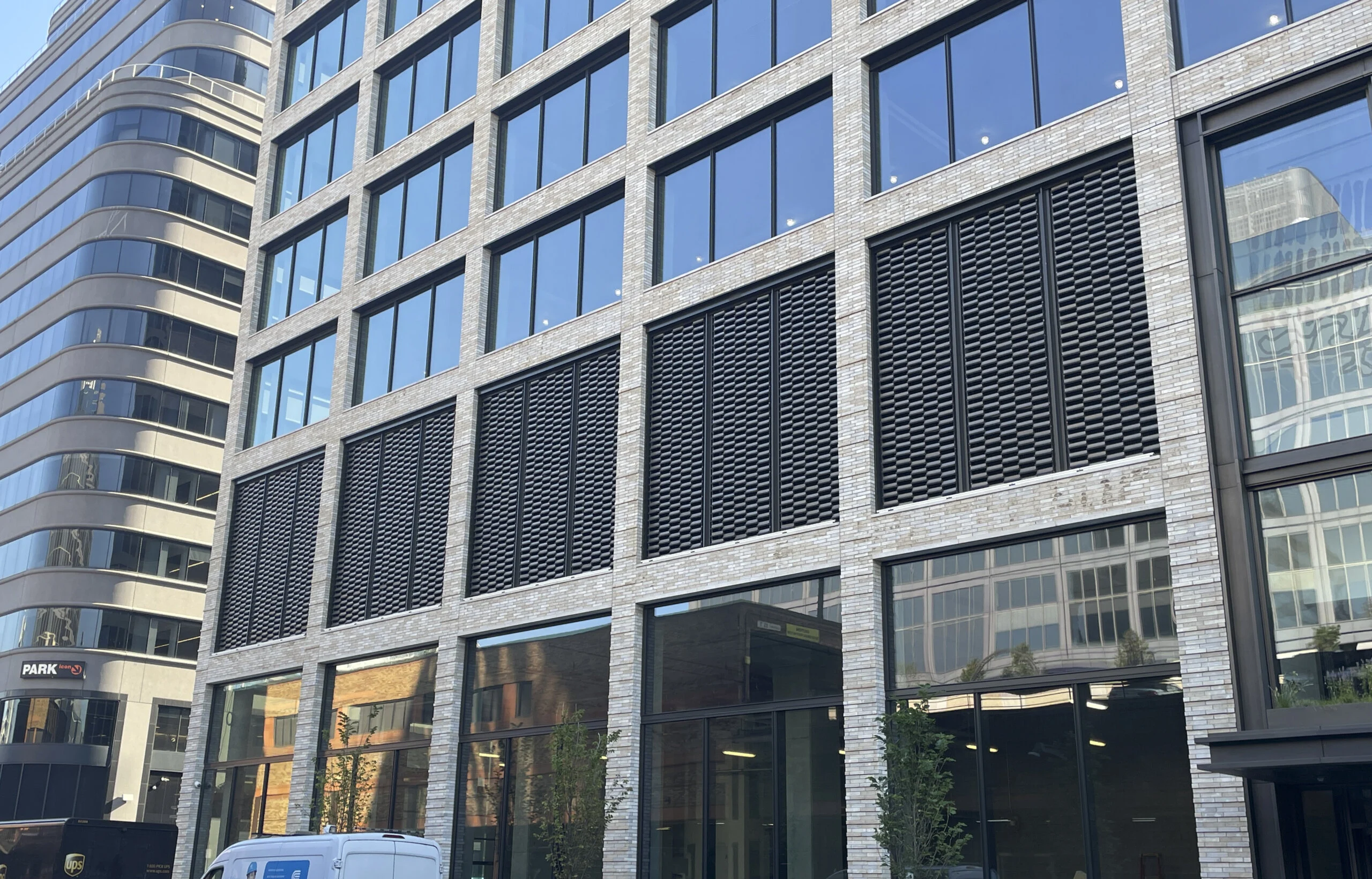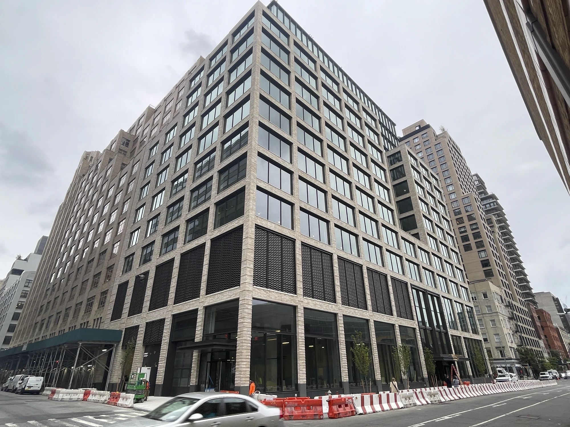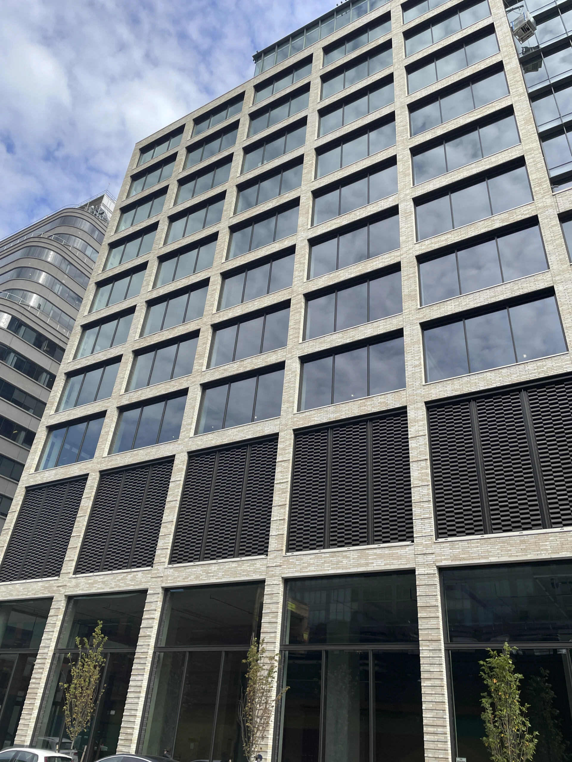 Our firm provided comprehensive curtain wall and canopy engineering for 561 Greenwich, a 19-story Class-A office building located in Manhattan’s Hudson Square neighborhood. Working in collaboration with façade contractor Harmon and design architect COOKFOX Architects, we engineered the building’s exterior envelope to complement its sophisticated architectural expression and meet demanding performance standards. The façade features a custom unitized curtain wall system paired with Wausau’s punched window components, designed to deliver both aesthetic refinement and long-term durability. Notable elements include a distinctive perforated panel system at the crown of the building and a series of terra cotta horizontal fins mounted on stainless steel mesh at the podium level, providing texture and visual interest to the streetscape. Our scope also encompassed the design of the building’s steel entrance canopy and associated metalwork, ensuring seamless integration with the overall façade.