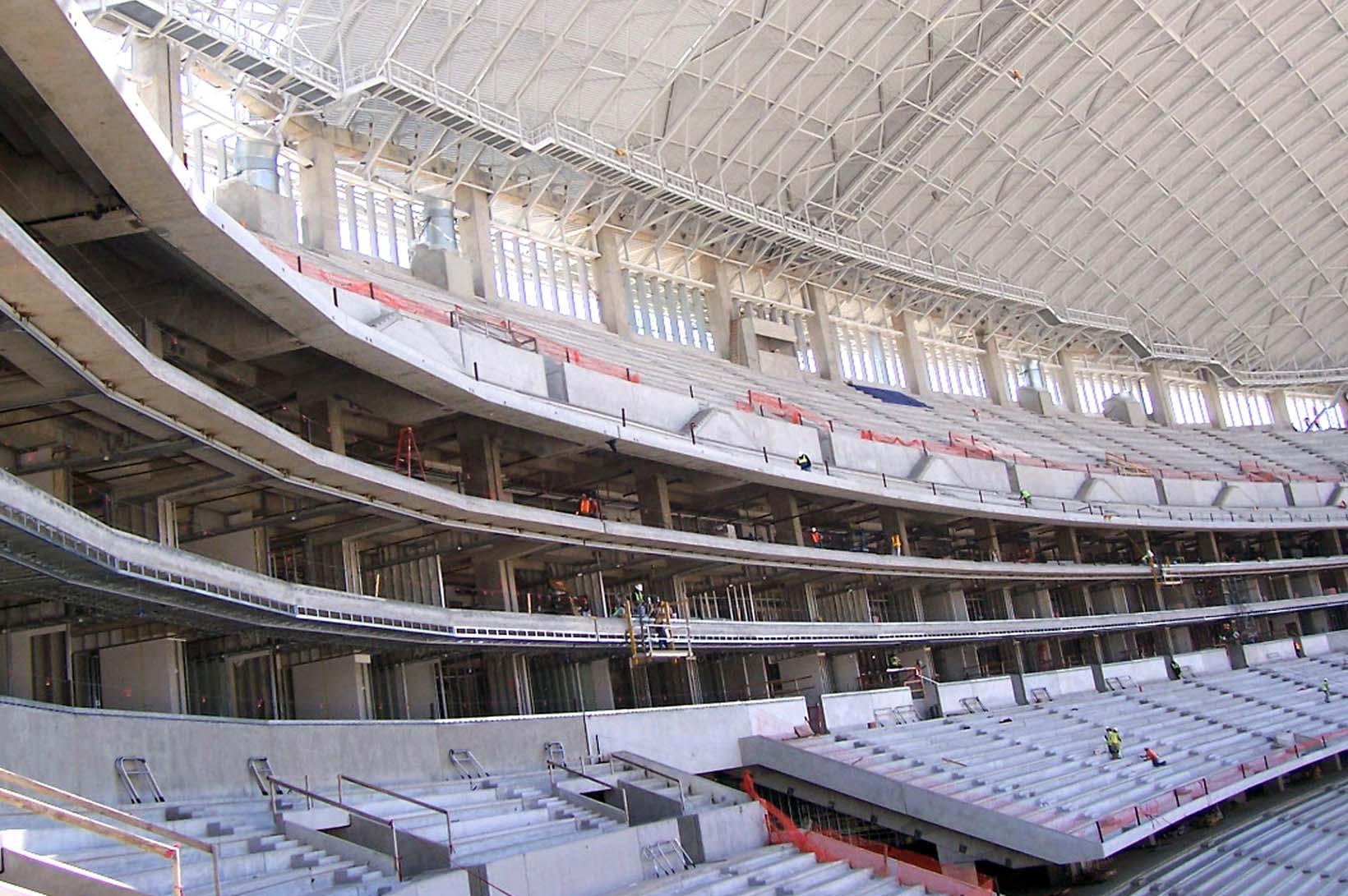 At 3.0 Million Square Feet, and 104 Million Cubic Feet, AT&T Stadium is the largest NFL stadium, and largest domed building in the world. CES, as Structural Engineer of Record for the Curtainwall, provided all Glass, Glazing and Curtainwall Engineering, Shop Drawings and Fabrication Drawings for all Glazing systems approximating 500,000 SF of glass and composite aluminum panels. Due to the curvature of the exterior façade, CES was also retained to create the 3D layout of all back up steel which supported the exterior curtainwall to ensure the vertical mullions and steel aligned.