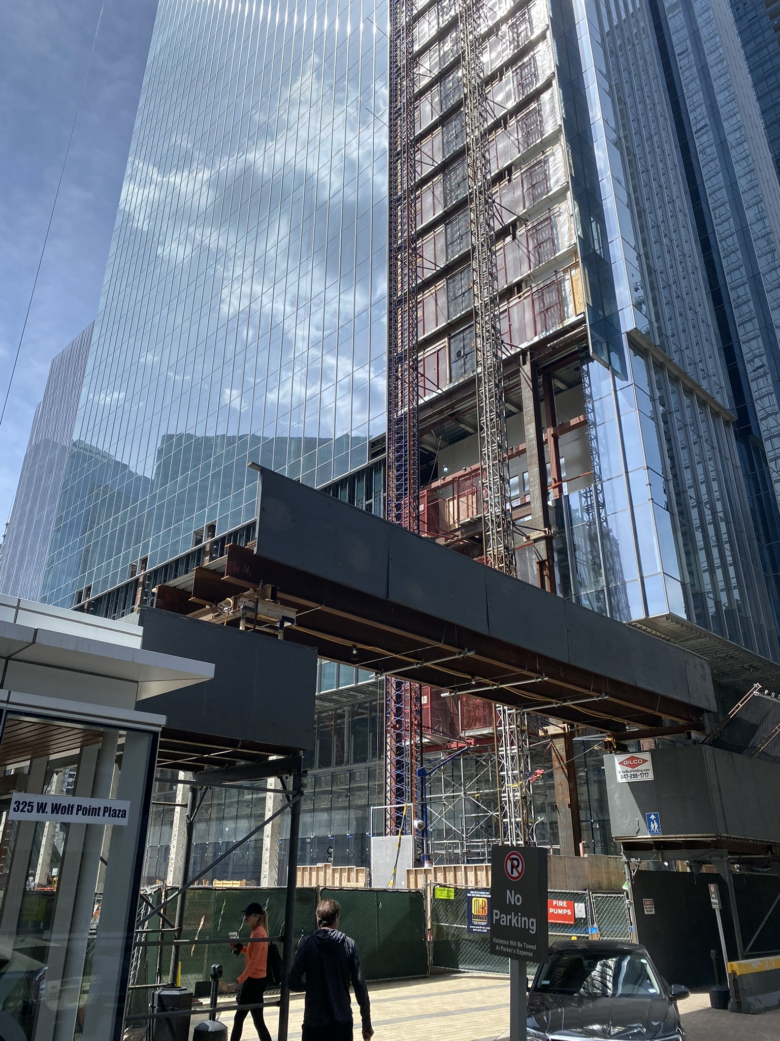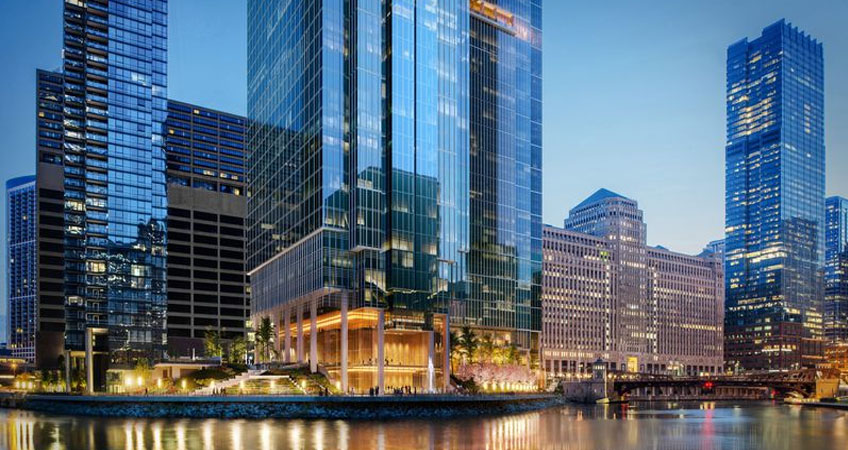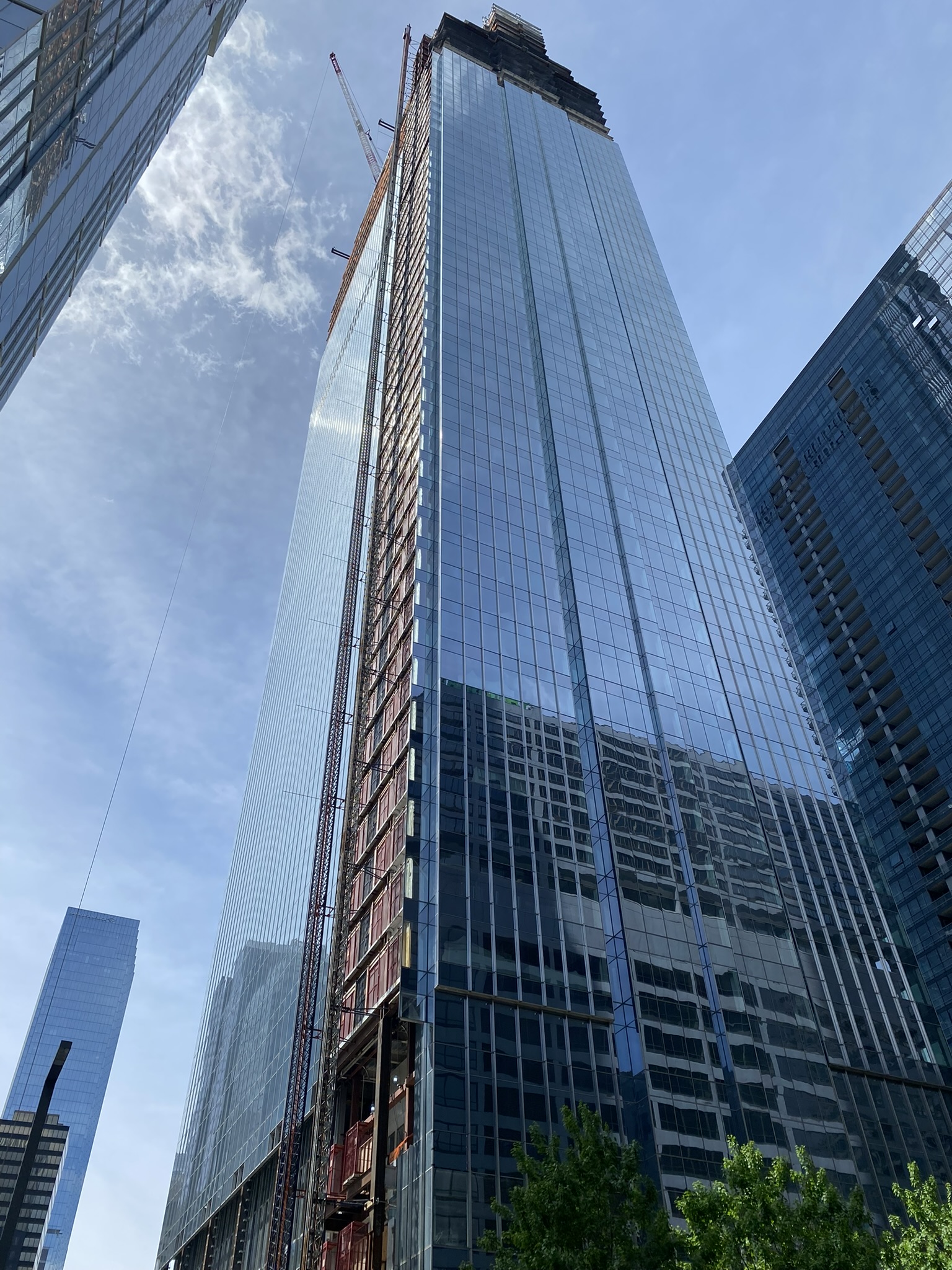 Right next to Wolf Point East, another project was awarded to CES called Wolf Point West which then became known as Sales Force Tower. This was to be an identical type of structure, except used for as an office building and although the number of floors were almost the same as the sister building, the floor to floor heights were increased on Sales Force Tower and the footprint was much larger. This massive façade truly creates a focus point on the Chicago River. The façade comprises approximately 568,000 square feet of custom unitized curtain wall, featuring varying depth vertical stainless steel covers. Additionally, a structural glass wall was installed at the podium level, enhancing the building’s transparency and connection to the surrounding environment. The curtain wall system was designed to accommodate the building’s sculptural form, characterized by a series of gently tapering setbacks that culminate in a distinctive crown. This design not only contributes to the tower’s aesthetic appeal but also aligns with its sustainability goals, as the building achieved LEED Gold certification. Our scope included the engineering design and creation of shop drawings for the building’s exterior curtain wall, ensuring the façade met both aesthetic and performance criteria. CES was retained to perform Design Assist and structural engineering for all of the exterior glazing systems.